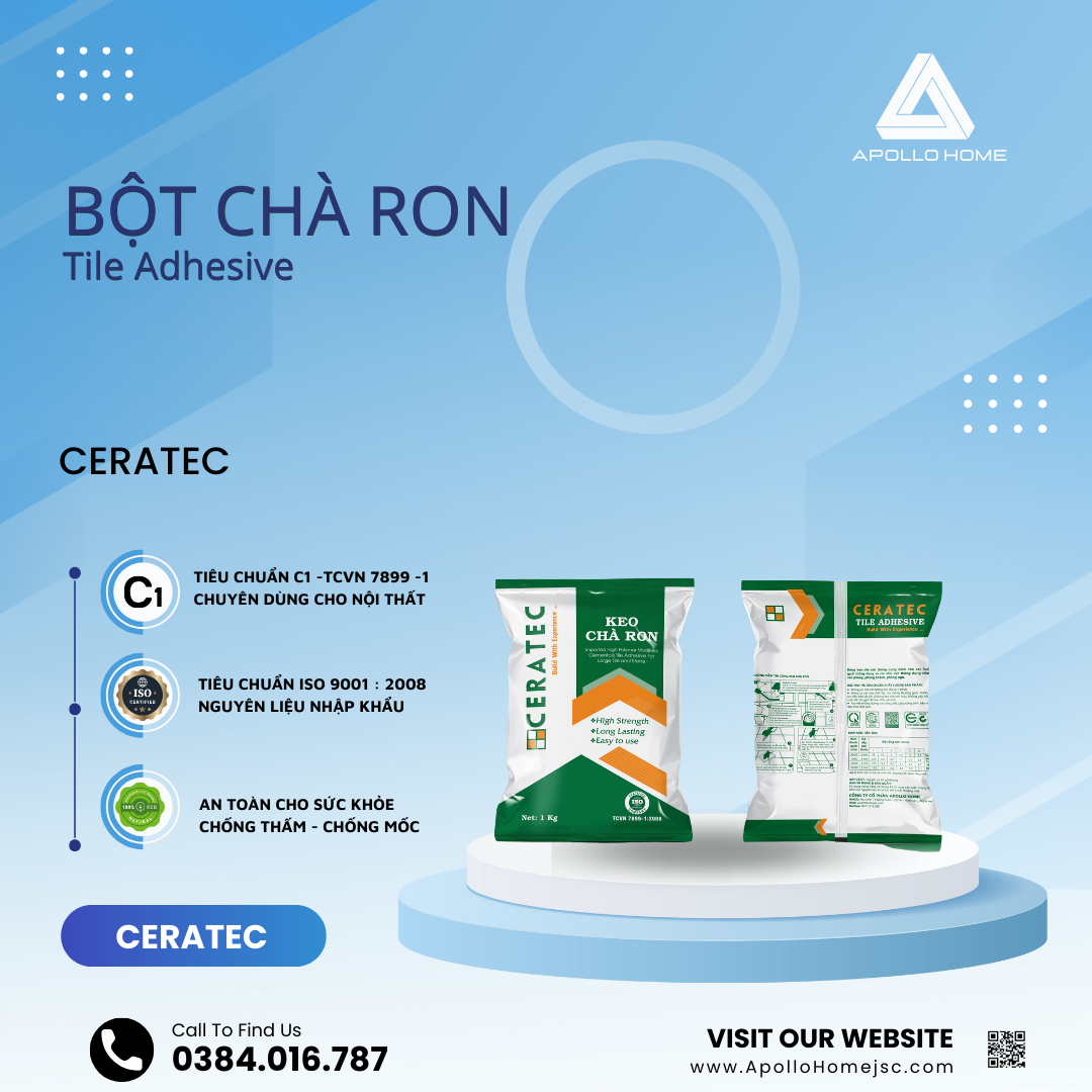 • Thời gian chờ để chà ron sau khi dán gạch: 24 giờ