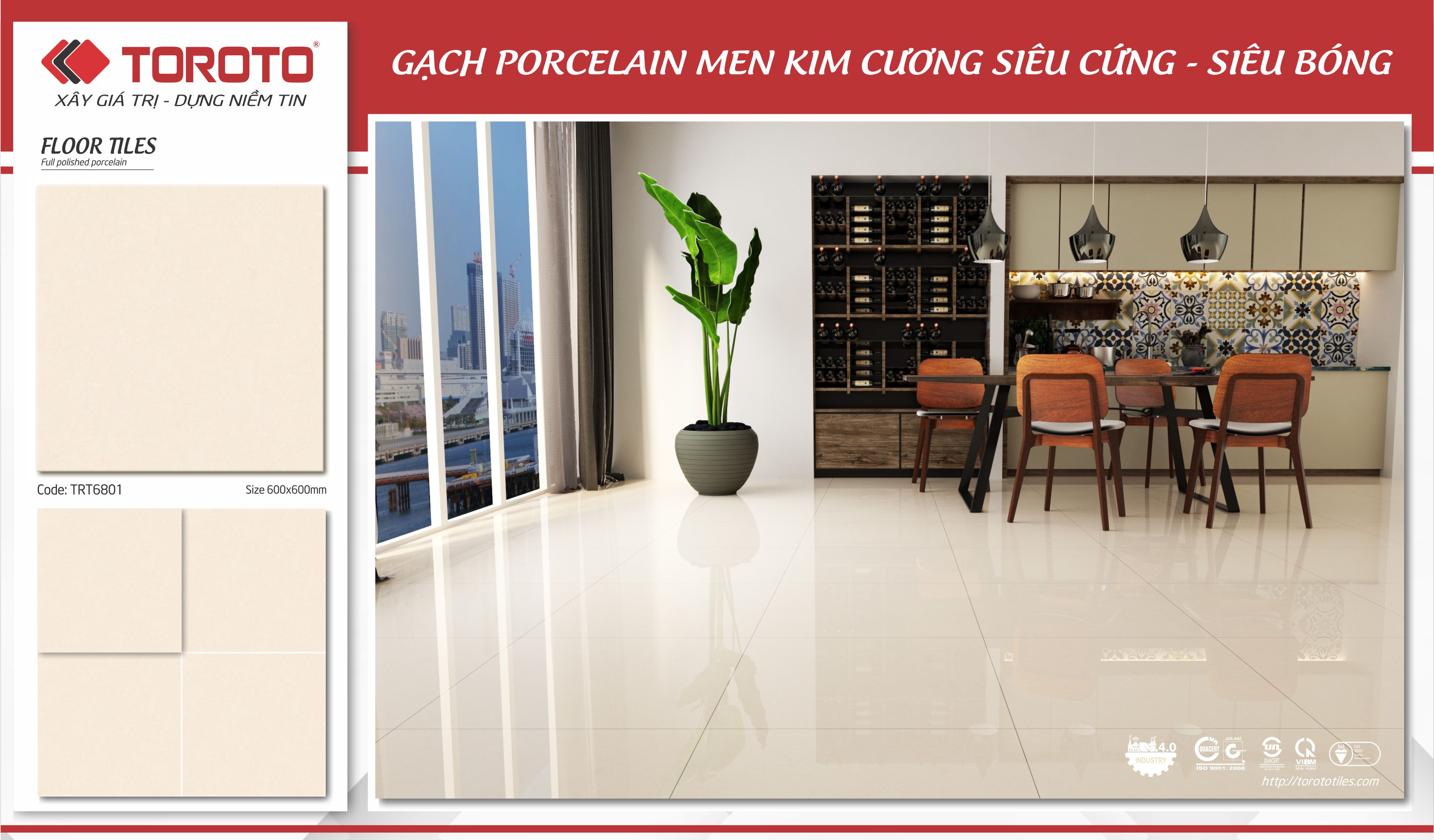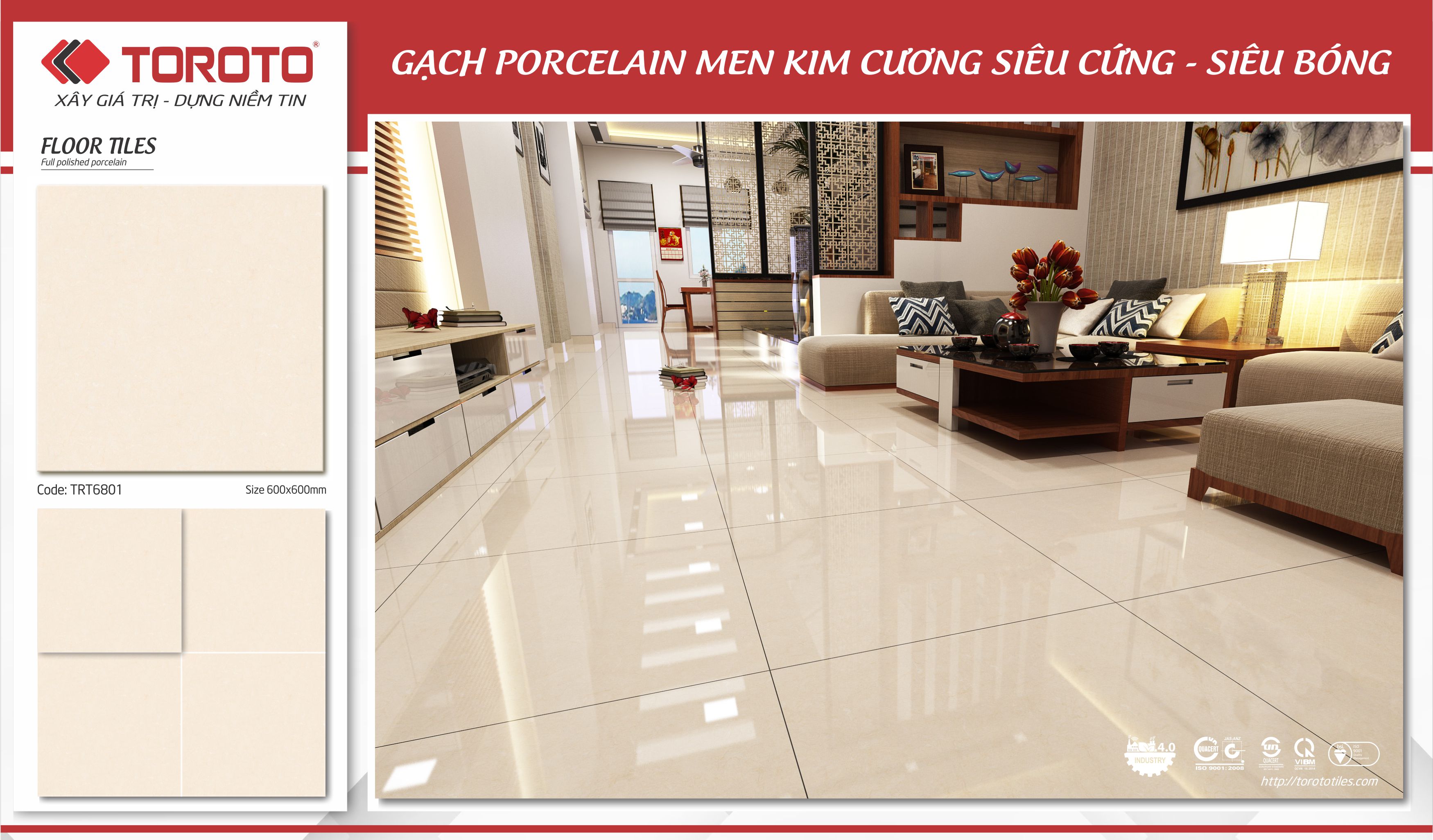 Gạch lát nền 600 x 600 xương bán sứ, Men bóng kính, mài Nano, công nghệ và men màu 100% Châu Âu .