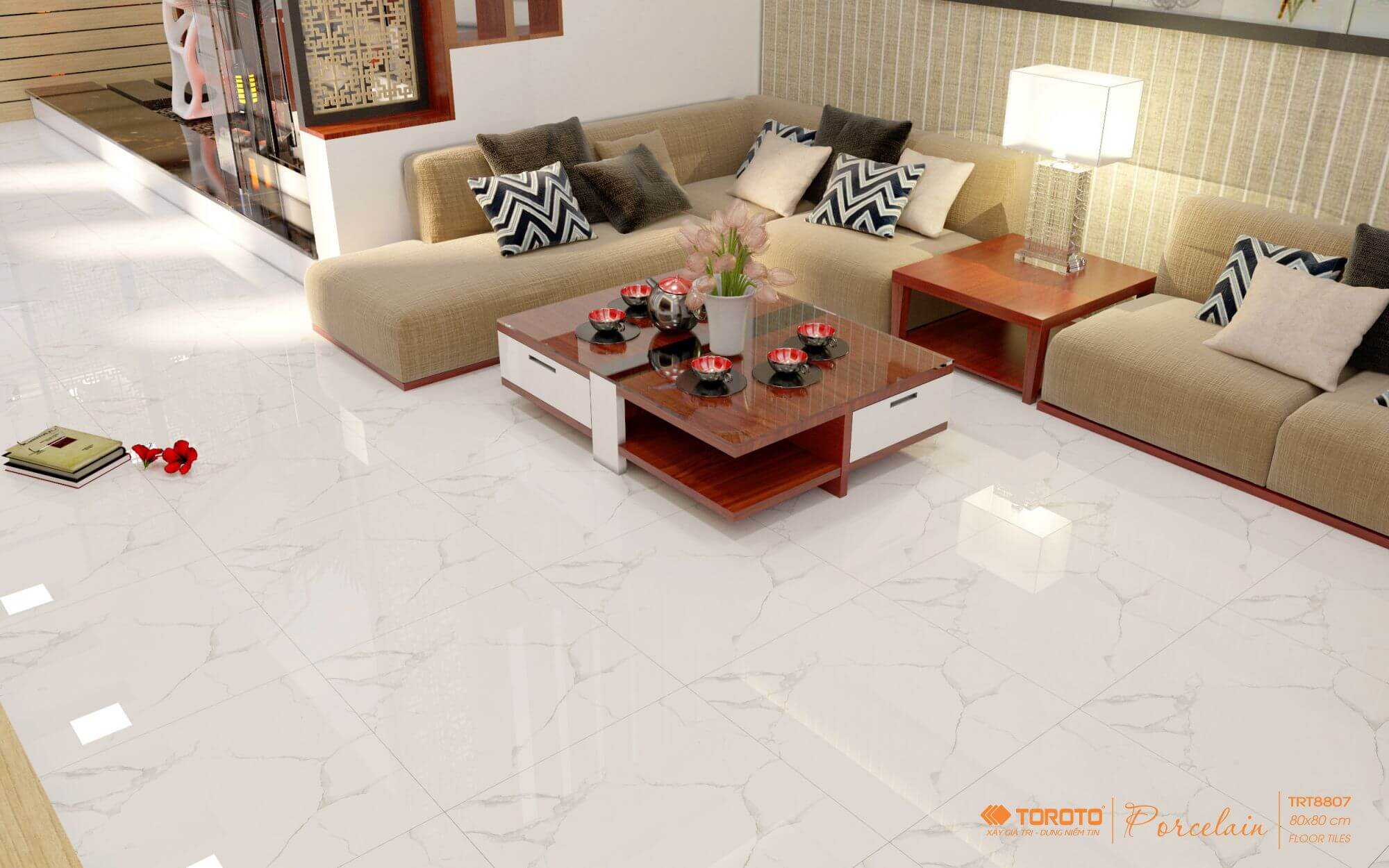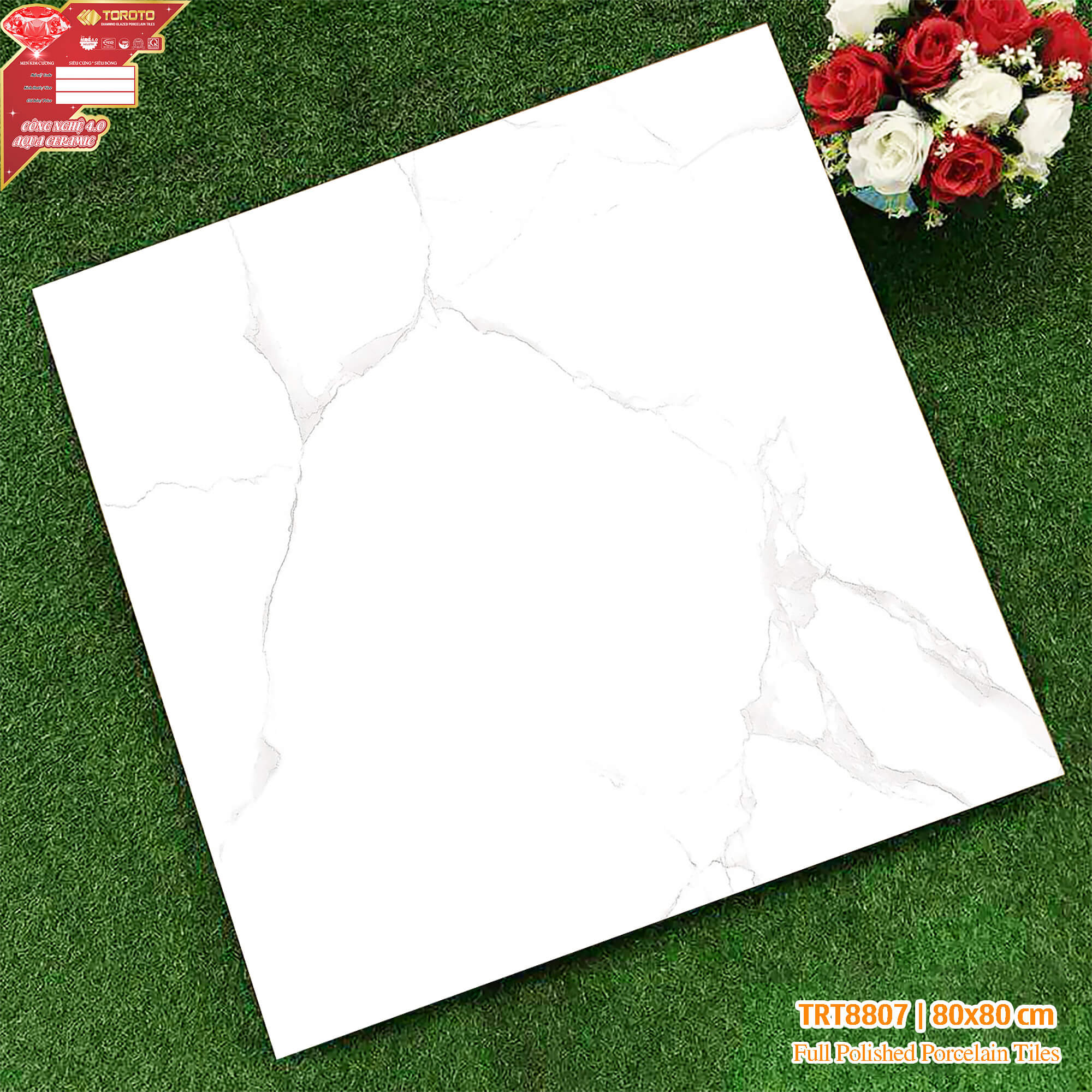 Gạch lát nền 800 x 800 xương bán sứ, Men bóng kính, mài Nano, công nghệ và men màu 100% Châu Âu .