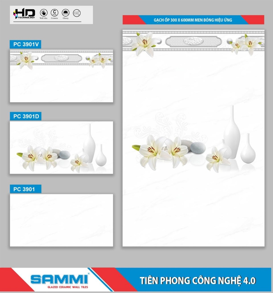 Gạch ốp tường 30x60cm men bóng (Glossy). Tiên phong trong công nghệ 4.0 - Công nghệ AQUA CERAMIC.