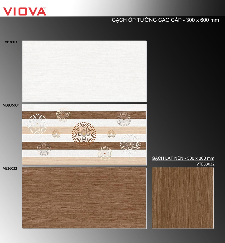 Gạch ốp VIOVA 300 x 600 công nghệ và men màu 100% Châu Âu . Chống mài mòn cực cao. Men bóng, bề mặt men dày tạo cho các họa tiết sắc sảo, mang đến cho ngôi nhà bạn đẳng cấp châu âu.