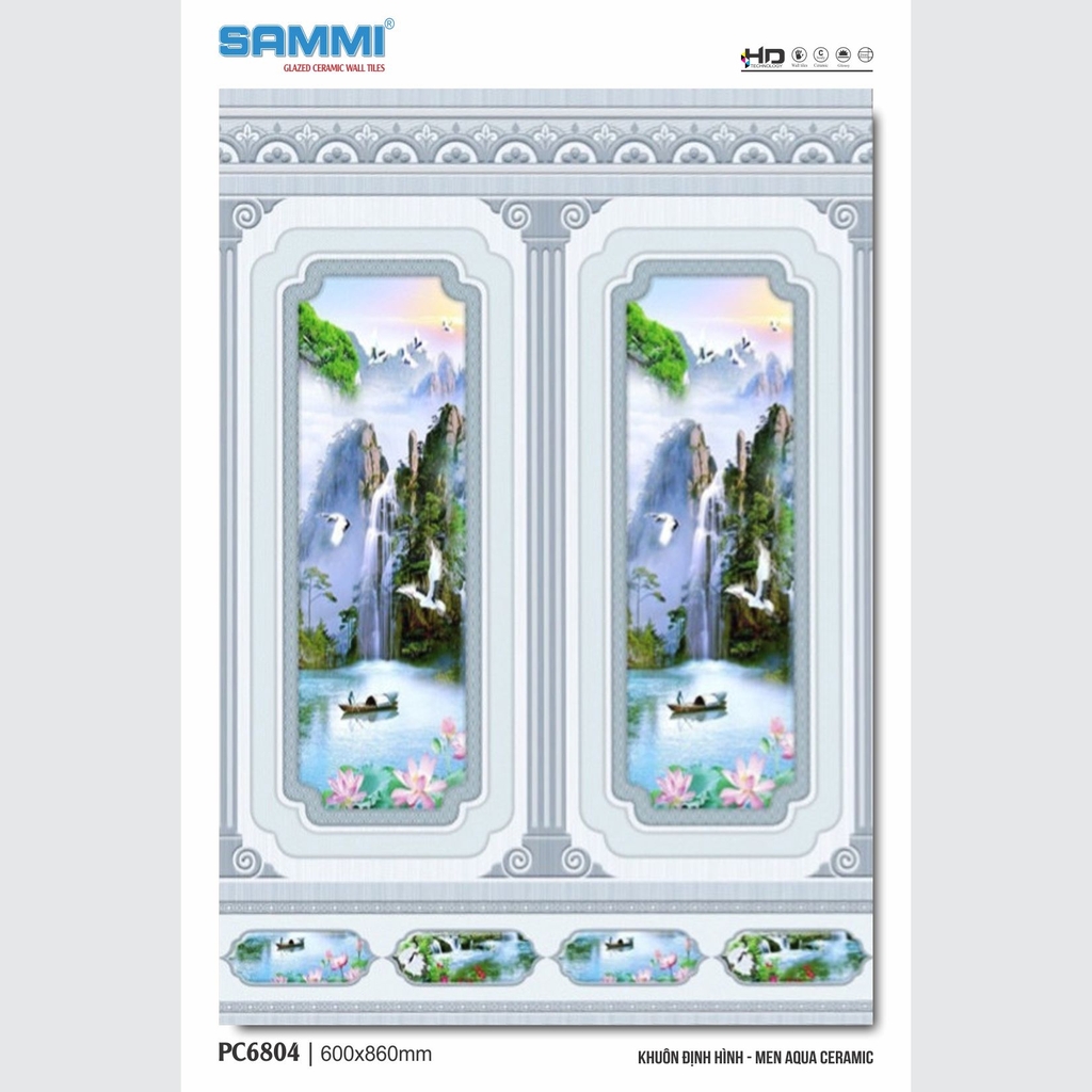 Gạch ốp tường 60x86 cm men bóng (Glossy), định hình. Tiên phong trong công nghệ 4.0 - Công nghệ AQUA CERAMIC.